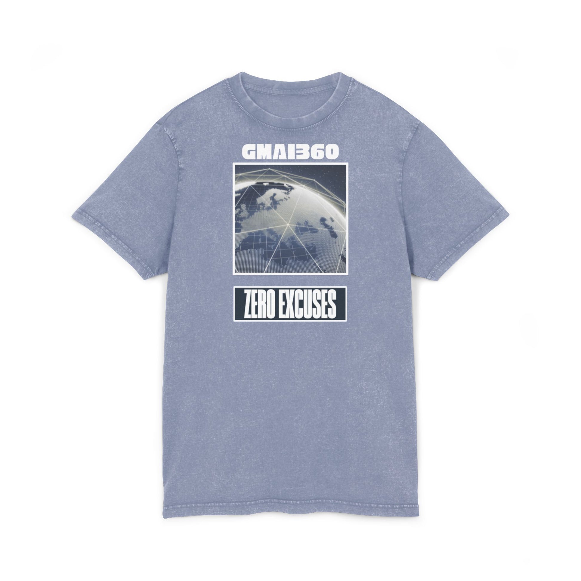 Acid Wash Graphic Tee — "GMAI360" Globe Design with "Zero Excuses" Slogan
